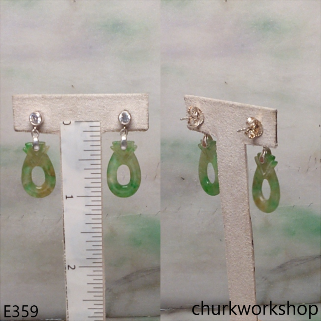 Green mix yellowish jade carving earrings
