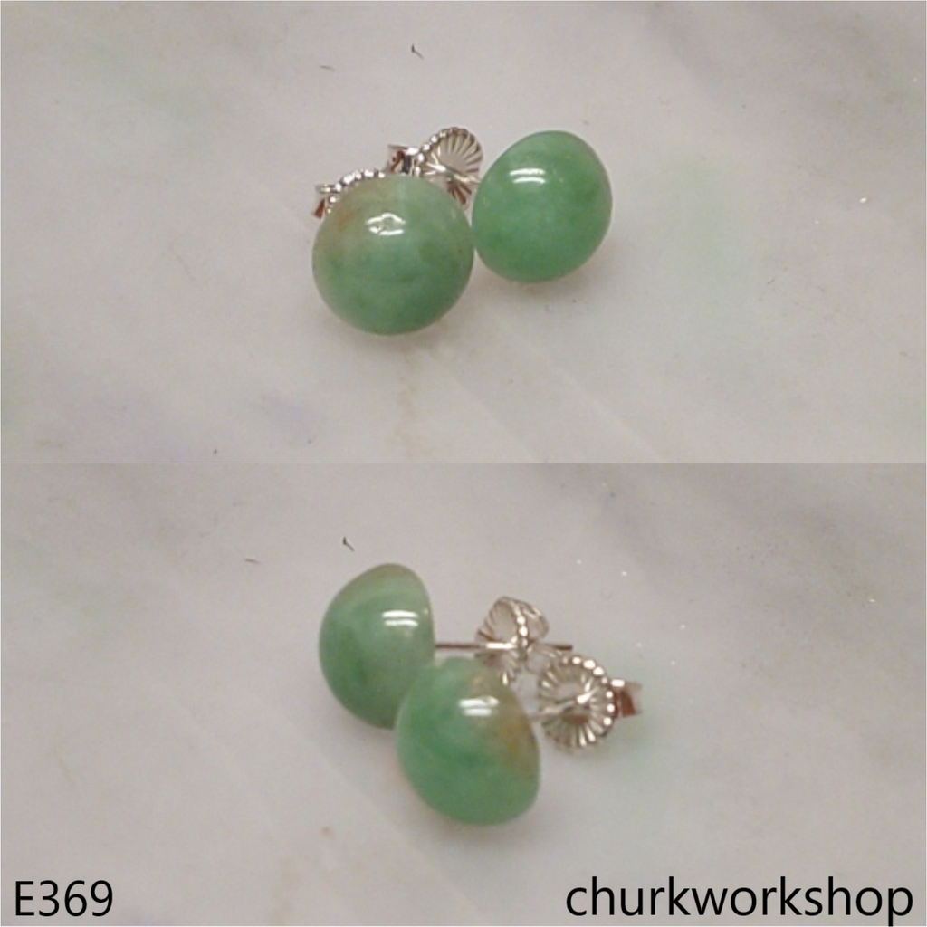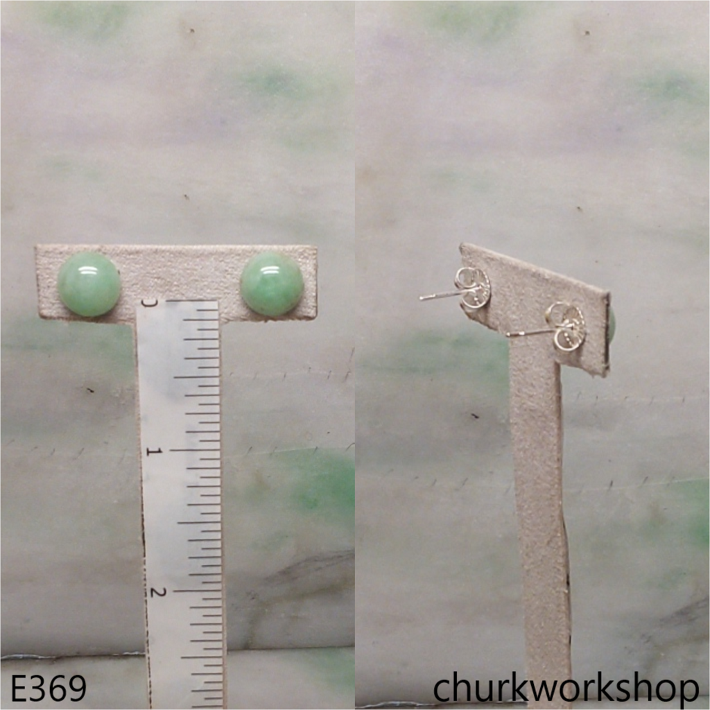 Half round jade ear studs silver setting