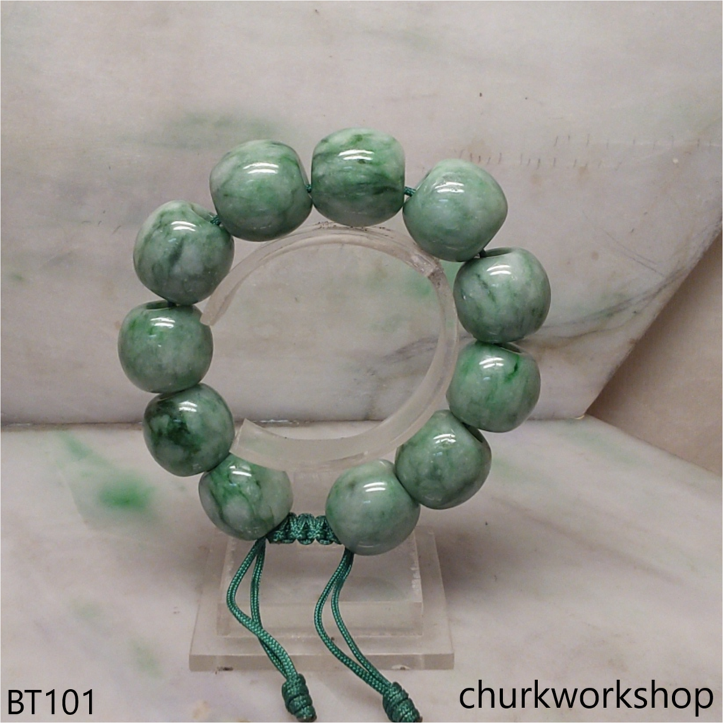 Green barrel beads jade bracelet