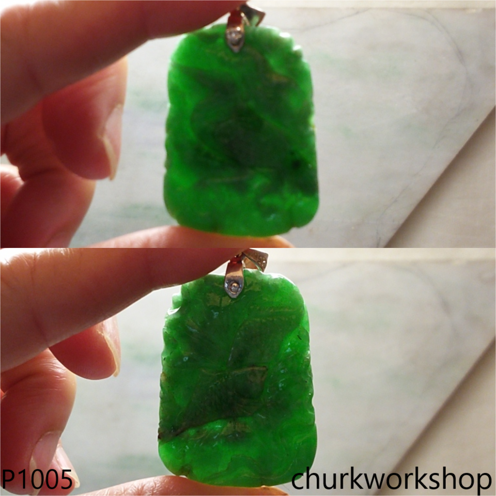 This handcrafted jade pendant is guaranteed to be 100% natural, non-enhanced, and untreated.