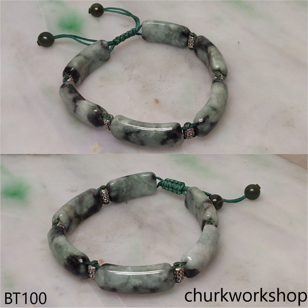 Light green jade bracelet 7 1/2 inch long and adjustable to 9