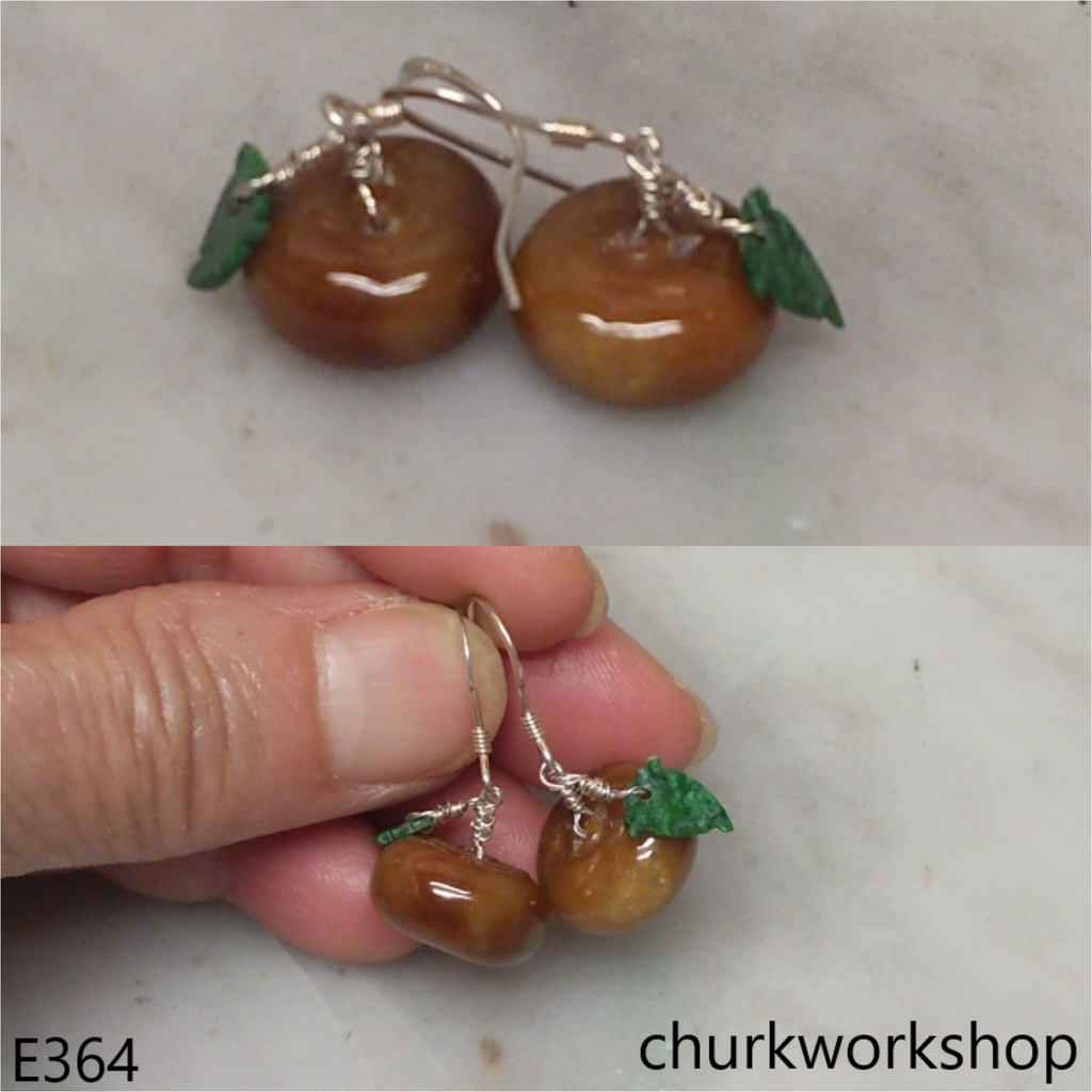 Brown jade persimmon earrings