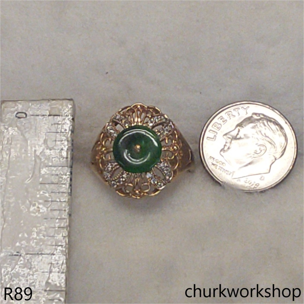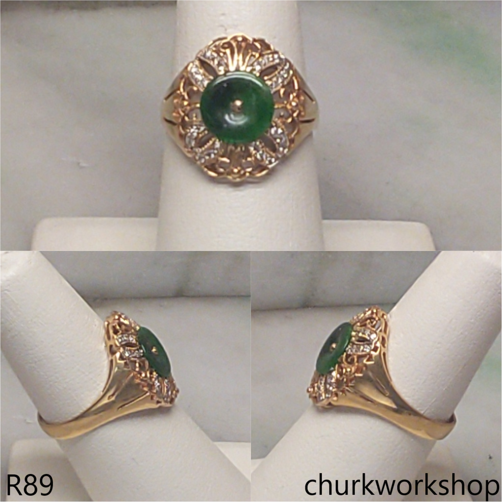 Green jade ring 18K yellow gold