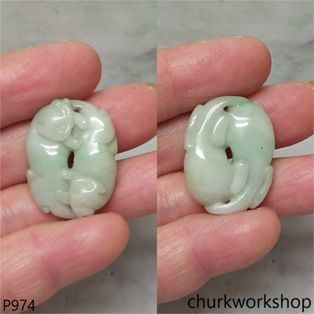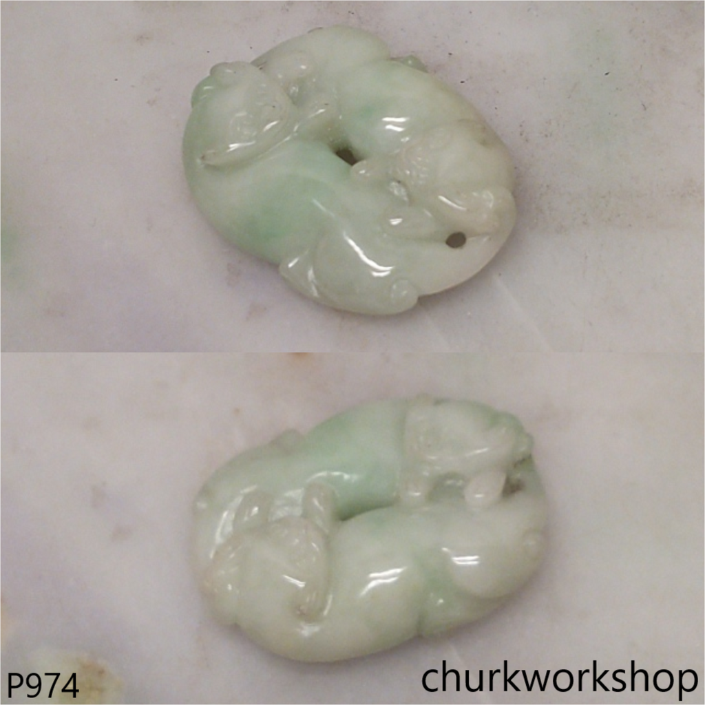 Light green jade double cat pendant